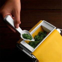 Durante el uso, los rodillos del accesorio aplastan las dos láminas entre sí, facilitando el cierre de los extremos del raviolo y, al mismo tiempo, cortan sus bordes.