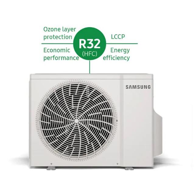 El refrigerante R32 ayuda a conservar la capa de ozono y tiene un menor impacto en el calentamiento global. Tiene un Potencial de Agotamiento de la Capa de Ozono (PAO) nulo y un Potencial de Calentamiento Global (PCG) inferior al de los refrigerantes convencionales R22 o R410A* que se utilizan habitualmente.