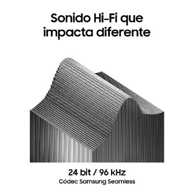 Sonido impresionante, digno de un estudio. Escucha con audio de ultra alta calidad desde el estudio de grabación hasta tus Galaxy Buds3 Pro. El Samsung Seamless Codec comprime y codifica audio de hasta 24bit/96kHz. Luego, lo decodifica en los Galaxy Buds3 Pro, con lo que mantiene el sonido de alta fidelidad de 24bit/96kHz para que puedas escuchar los detalles más minuciosos, tal y como fue concebido.
