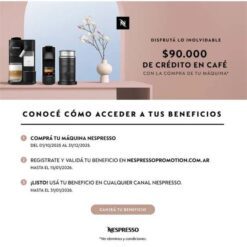 La cafetera Nespresso Essenza Mini White es una opción compacta y elegante para quienes buscan disfrutar de un café de calidad profesional en casa. Con un diseño minimalista y moderno en color blanco, esta máquina utiliza cápsulas Nespresso del sistema Original y cuenta con una bomba de alta presión de 19 bares que garantiza una extracción óptima del sabor y aroma del café. Su tanque de agua tiene una capacidad de 0,6 litros, ideal para espacios reducidos o para quienes consumen pocas tazas al día. Se calienta en apenas 30 segundos y permite preparar espressos y lungos con solo presionar un botón. Además, cuenta con apagado automático para mayor seguridad y eficiencia energética. Es fácil de usar, limpiar y mantener, siendo perfecta para quienes buscan practicidad sin resignar calidad en cada taza.