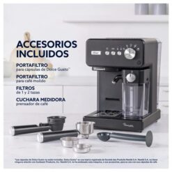 | Incluye | Portafiltro para cápsulas de Dolce Gusto*, portafiltro para café molido, filtros de 1 y 2 tazas, y cuchara medidora/prensador de café |