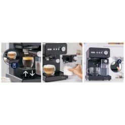 La Cafetera Automática de Espresso Oster PrimaLatte es la opción ideal para quienes buscan calidad y practicidad en cada taza. Gracias a su innovadora tecnología Auto-Frothing, prepara cappuccinos y lattes deliciosos con solo tocar un botón, siempre con una espuma perfecta con cualquier tipo de leche. Permite elegir entre café molido o cápsulas Dolce Gusto* para una experiencia personalizada. Su bomba italiana de 15 bar optimiza la extracción del café, logrando una crema espesa y un sabor intenso en cada sorbo. Incluye un elegante soporte de taza de acero inoxidable, ideal tanto para un cappuccino grande como para un espresso doble, y su sistema automático de limpieza de leche facilita el mantenimiento, dejando la cafetera siempre lista. Viene con un portafiltro para cápsulas de Dolce Gusto*, portafiltro para café molido, filtros de 1 y 2 tazas, y cuchara medidora/prensador de café. Todo lo necesario para disfrutar de una gran experiencia, con total comodidad y sin complicaciones.