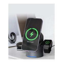 Estación de carga inalámbrica 3 en 1 de 15 W con mecanismo de giro avanzado.