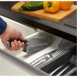 CUCHILLO DE ACERO INOXIDABLE CON FUNDA TRANSPARENTE: gracias a su elegante diseño, Ever Sharp se puede exhibir en cualquier encimera de cocina, sin importar el estilo.