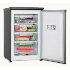Este freezer es un elegante freezer vertical compacto de color acero inoxidable. En su interior, cuenta con 4 cajones separados para agrupar y ordenar alimentos por tipo y cantidad. Su puerta reversible hace que sea más fácil ubicarlo en cualquier sitio. Y, gracias a su disposición vertical, ocupa mucho menos espacio que otros freezers horizontales clásicos.