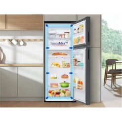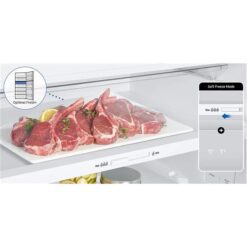 Incorpora el modo AI Energy Mode de SmartThings, que aprende tus hábitos, ajusta el consumo y el ciclo de descongelado, ayudando a ahorrar hasta un 10 % de energía según las condiciones de uso. El interior ofrece estantes de vidrio templado, bandejas múltiples, compartimientos para huevos, cajones para frutas/verduras, iluminación LED y un cajón Optimal Fresh+ que permite conservar ciertos alimentos delicados más tiempo gracias a su modo “Soft Freeze”. En cuanto al exterior, tiene un acabado negro elegante, puertas planas con manijas integradas, y un dispensador de agua libre de BPA, aportando estilo y funcionalidad.