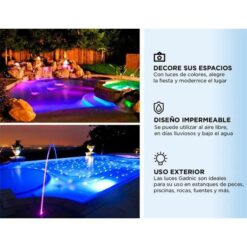 La lámpara LED sumergible es ideal para agregar luminosidad a tus espacios, con opción de luz blanca o RGB. Es de bajo consumo y construida en materiales de alta calidad muy durables