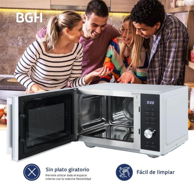 Perfecto para estudiantes, familias pequeñas o para sumar rapidez en tu rutina diaria, el microondas BGH es tu aliado para preparar platos de manera eficiente y segura.