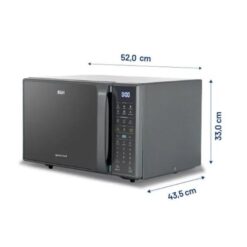 Microondas Digital B228DS20 Silver – Capacidad XL y diseño premium. Gran capacidad y doble función para tus comidas favoritas. Con una capacidad total de 28 litros y tecnología bifunción, este microondas digital está diseñado para quienes buscan practicidad, espacio y estilo en la cocina. Su exterior en color silver con terminación mirror en la puerta le da un look sofisticado y moderno, ideal para cocinas de alto diseño. El control digital por membrana y su display LED blanco aseguran un uso cómodo y preciso.