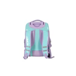 Esta mochila con carrito está diseñada para ofrecer comodidad, organización y resistencia en el uso escolar diario. Cuenta con una apertura principal amplia que facilita el acceso al contenido y dos divisiones internas que permiten ordenar útiles, carpetas y cuadernos de manera práctica. La base plástica reforzada junto con los protectores plásticos en los bordes inferiores aportan mayor durabilidad frente al uso continuo.