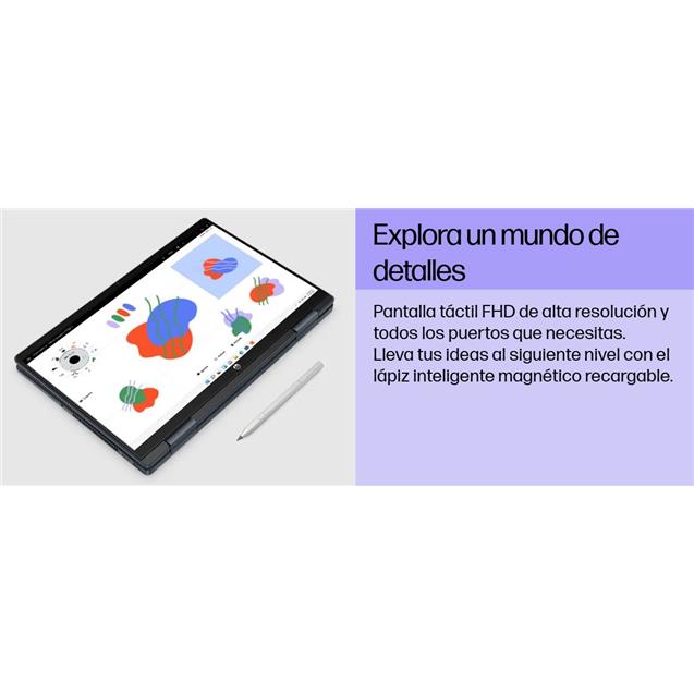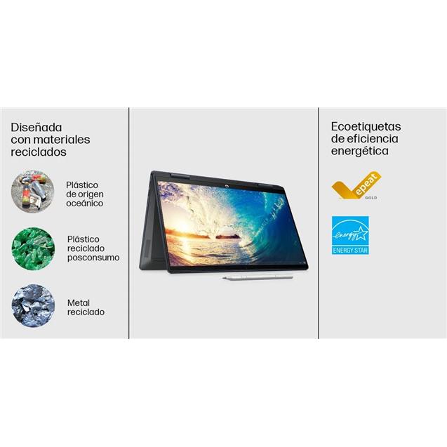 Tu laptop convertible que te ayudará a crear, estudiar o divertirte a tu manera. Con su diseño flexible que integra materiales reciclados, su gran desempeño, conexión rápida Wi-Fi 6, almacenamiento SSD, audio poderoso y pantalla de alta resolución te mantendrá dinámico en cualquier lugar.