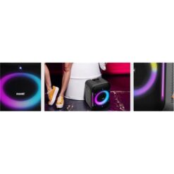 Uno de los aspectos más distintivos del Bossa Mini es su diseño visual. El woofer está adornado con un anillo LED integrado que añade un efecto visual llamativo al sistema de sonido. Este anillo LED no solo resalta la estética del woofer, sino que también crea una atmósfera dinámica y envolvente. A los lados del woofer, el Bossa Mini está equipado con barras LED adicionales que cambian de color en sincronía con la música, brindando un toque épico a cualquier celebración.