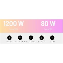 ¡Compacto pero potente! A pesar de su tamaño compacto, el Bossa Mini está diseñado para ofrecer un rendimiento sobresaliente en cualquier entorno. La potencia de 1200W PMPO asegura que pueda manejar picos de audio intensos y mantener un nivel de volumen adecuado para una variedad de eventos, desde reuniones familiares hasta fiestas más grandes. Los 80W RMS garantizan que el sonido se mantenga claro y sin distorsión incluso durante períodos prolongados de uso continuo.