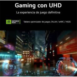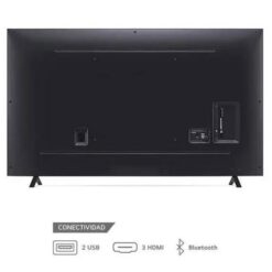 En cuanto a conectividad, dispone de Wi-Fi, Bluetooth 5.0, tres puertos HDMI, dos USB, entrada óptica, salida de audio y puerto LAN, lo que asegura compatibilidad con diversos dispositivos como consolas, notebooks, discos externos y home theaters. En modo gaming, incluye funciones como ALLM (modo automático de baja latencia), Game Optimizer y Game Dashboard, que optimizan el rendimiento para juegos de consola, aunque con una tasa de refresco máxima de 60?Hz, por lo que está pensada para jugadores ocasionales más que para gaming competitivo.
