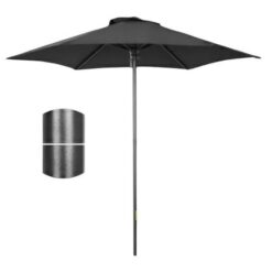 Esta sombrilla es ideal para actividades al aire libre como camping o playa. La estructura es de tipo central y no incluye base. La altura total es de 2 metros,