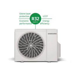 Refrigerante R32. Utiliza gas R32, con menor impacto ambiental: no afecta la capa de ozono y tiene un potencial de calentamiento global más bajo que refrigerantes tradicionales.