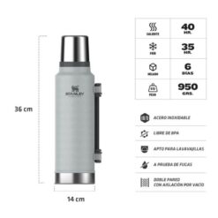 La palabra que viene a la mente es “icónico”: diseño elegante, construcción robusta y una actitud indescriptible. Totalmente a prueba de fugas y capaz de mantener las bebidas calientes durante 40 horas, frías durante 45 horas o con hielo durante 6 días. Con el termo Stanley nunca tendrás que preocuparte de que el agua se enfríe o que tu bebida se caliente. Gracias a su pared externa de acero grueso obtendrás un rendimiento térmico que te durará a través de los años.