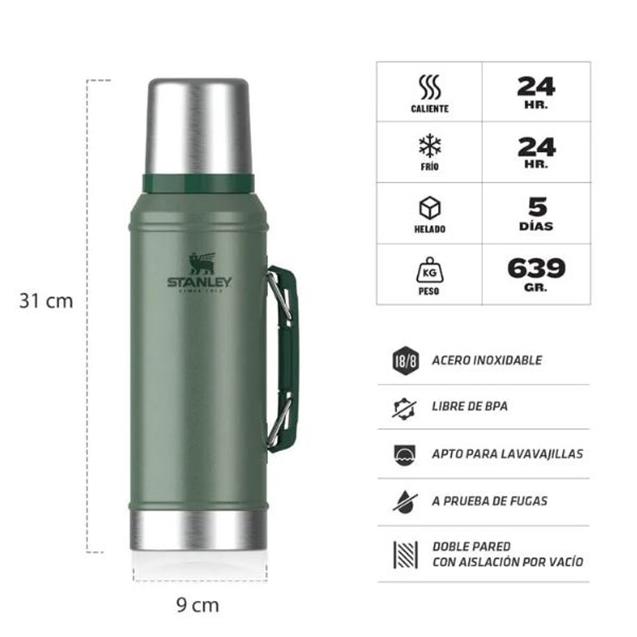 Termo Stanley Clasico 950 Ml Verde C/Manija (11494-008)
