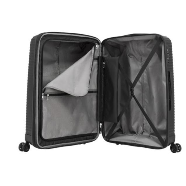 Cuenta con ruedas dobles que giran 360°, ideales para un desplazamiento suave y sin esfuerzo. Su candado TSA incorporado brinda mayor seguridad al viajar. En el interior, incluye compartimentos organizadores, separador con cierre y cintas cruzadas para mantener todo en su lugar.